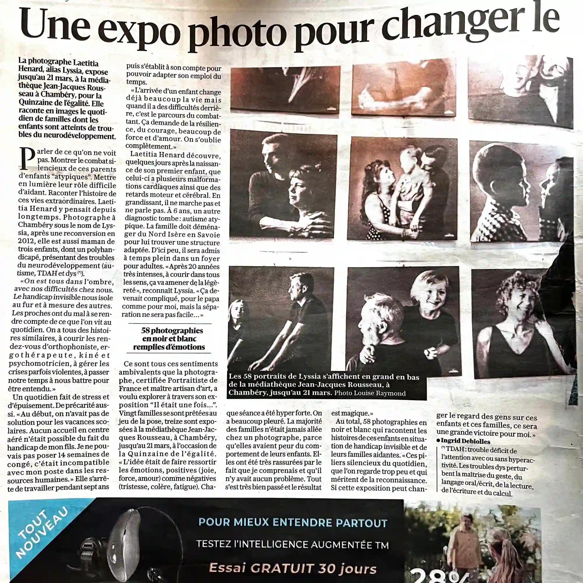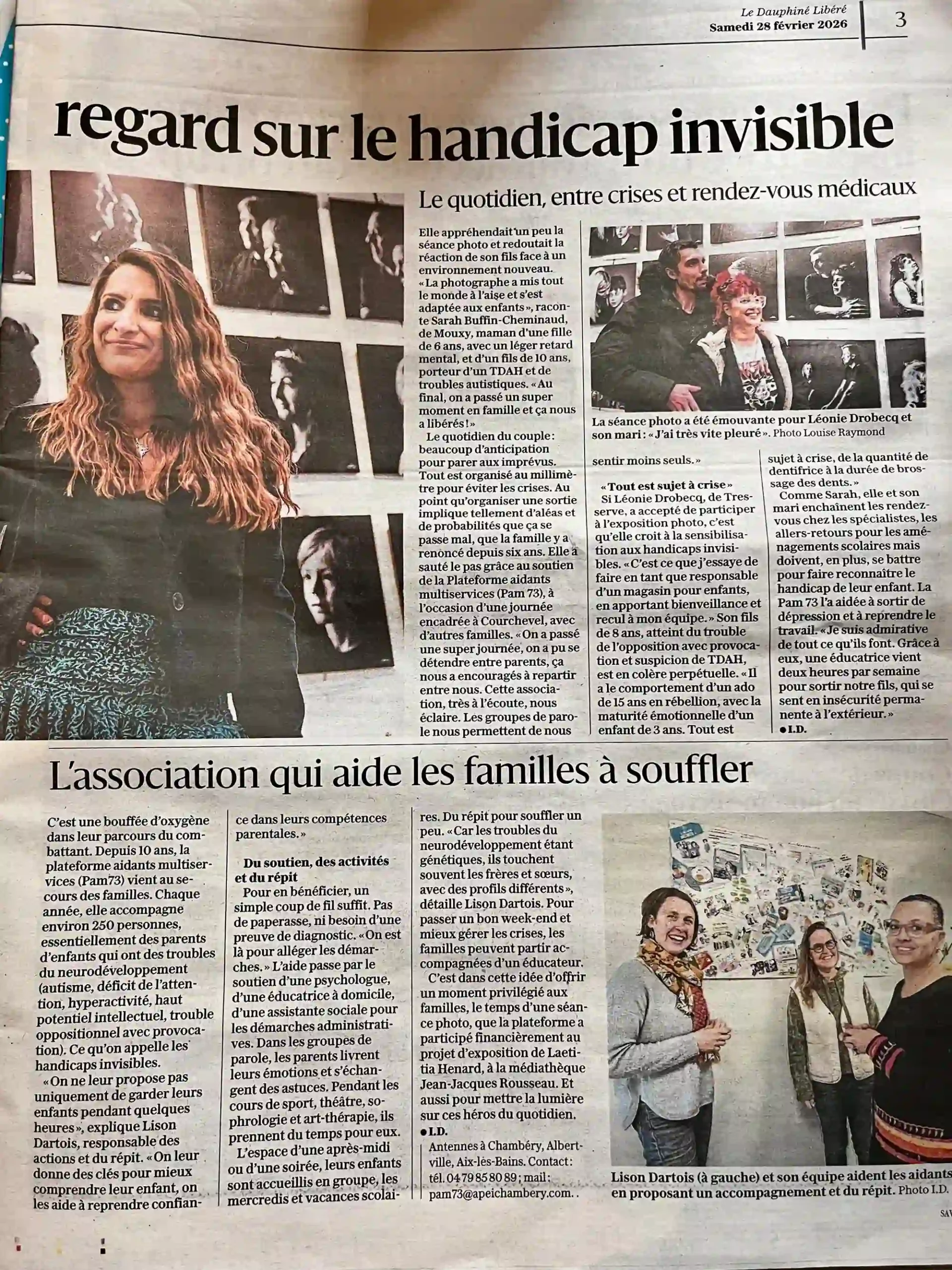 Cette exposition présente 58 portraits en noir et blanc, réalisés grâce au soutien de la PAM73, auprès de familles concernées par le handicap invisible.